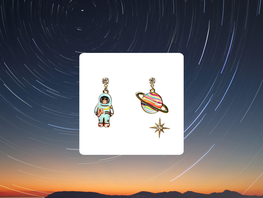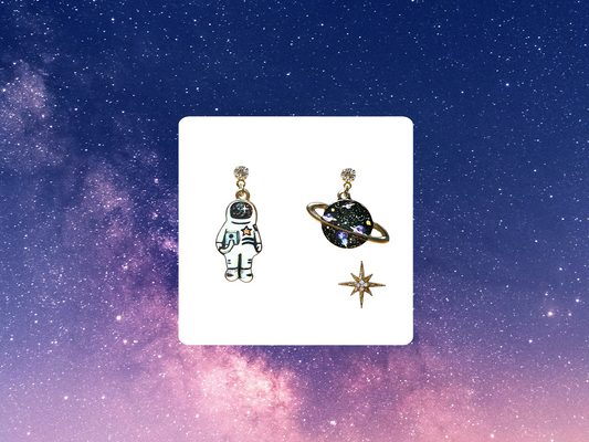 Astronaut & Planet (light blue & pink) Earrings– Set of three